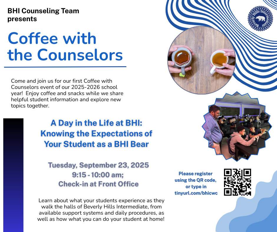 Join us on our next Coffee with the BHI Counselors. Translation to Spanish will be available. Please register using the QR code, or click the link tinyurl.com/bhicwc . Feel free to join us last minu. . .